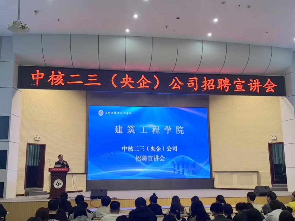 为深化校企合作,拓宽毕业生就业渠道,4月7日,yl6809永利邀请中国核工业二三建设有限公司在天鹅湖校区学术报告厅举办招聘宣讲会。公司教学科研工作负责人李佳出席,2023级全体员工参与。