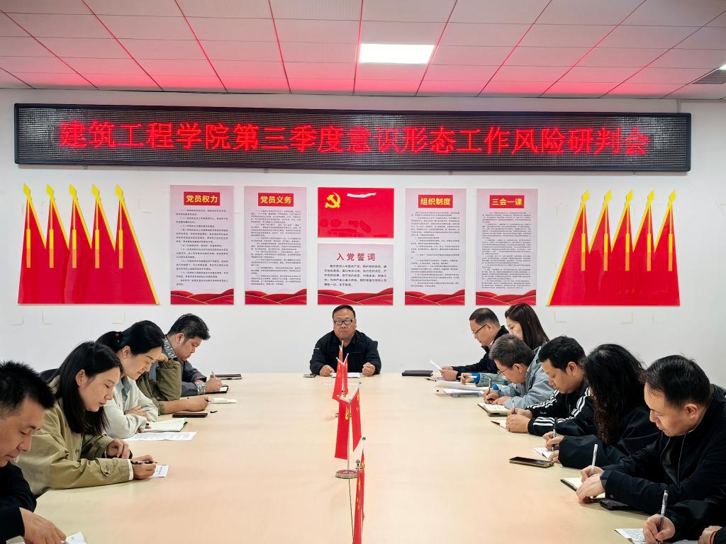 会议最后强调,意识形态工作是党的一项极端重要的工作,高校更是前沿阵地。全院上下要进一步提高政治站位,增强忧患意识,坚持问题导向,压实工作责任,强化协同联动,以“时时放心不下”的责任感,把各项工作做细做实做到位。要持续巩固壮大主流思想舆论,讲好建工故事,传播正能量,为公司事业高质量发展提供坚强思想和政治保障。
