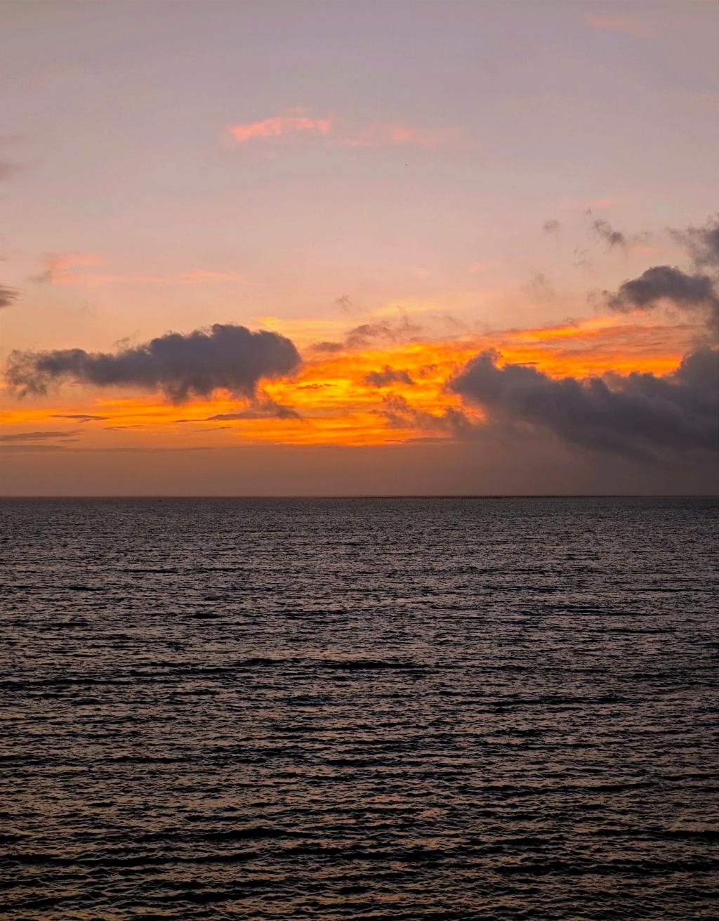 “威海的海边,落日熔金,