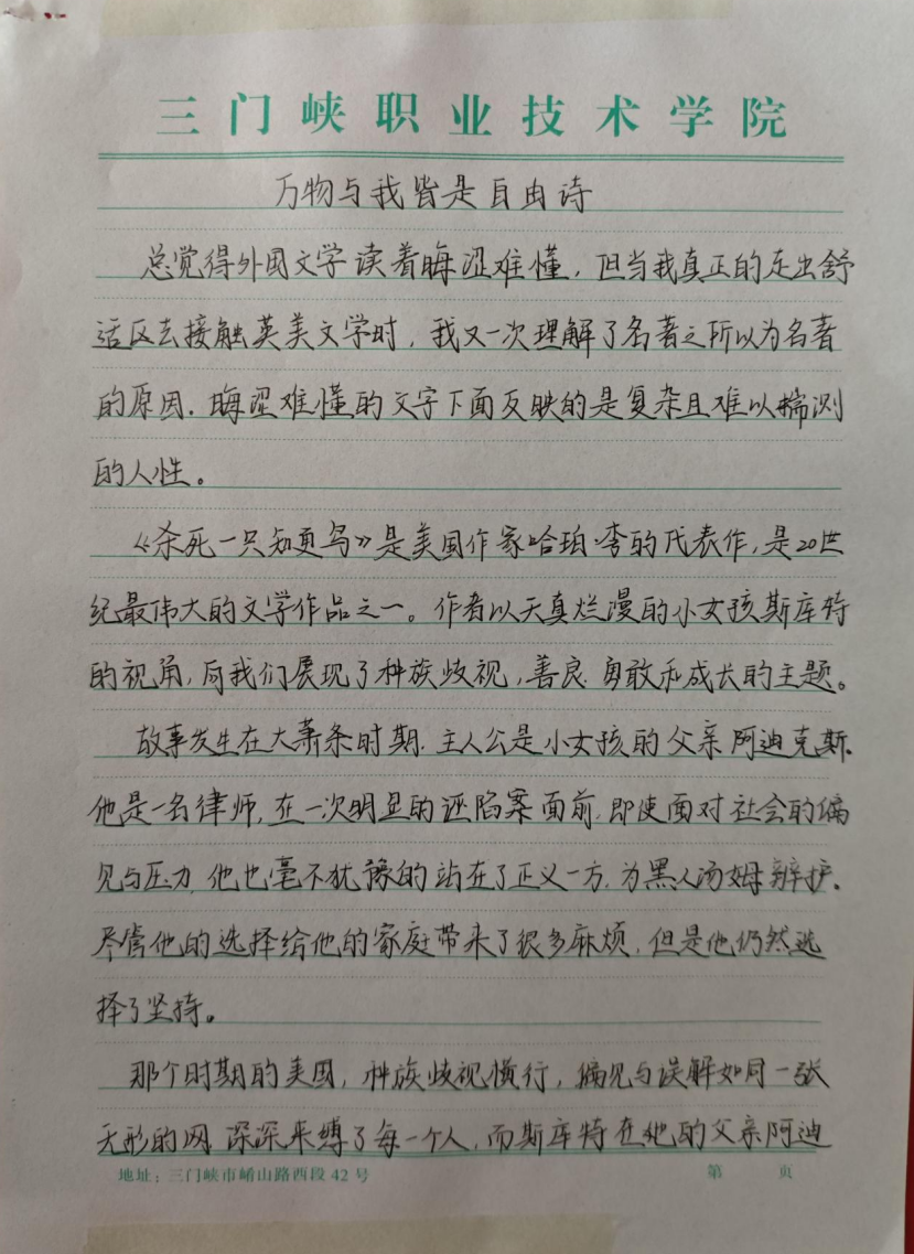 有的同学从建筑历史典籍中探寻古代工匠智慧,结合现代建筑理念探讨传统与创新的融合;有的同学分享从文学名著中获得的精神启迪,阐述其对塑造个人价值观和职业理想的重要意义。这些作品不仅展现了同学们扎实的文字功底,更体现出他们对阅读内容的深度思考,以及将知识与专业学习、个人成长相结合的能力。