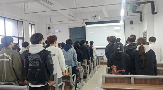 团课伊始,全场肃立,《光荣啊,中国共青团》的激昂旋律响起。全体团员精神饱满、声音洪亮,以整齐的合唱表达对共青团的忠诚与热爱。熟悉的旋律不仅点燃了现场氛围,更让团员们在歌声中重温入团初心,感受到作为青年团员的责任与使命,为本次“石榴籽一家亲”主题学习奠定了昂扬的基调。