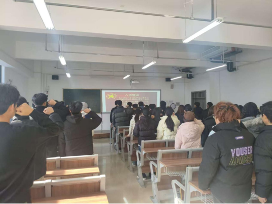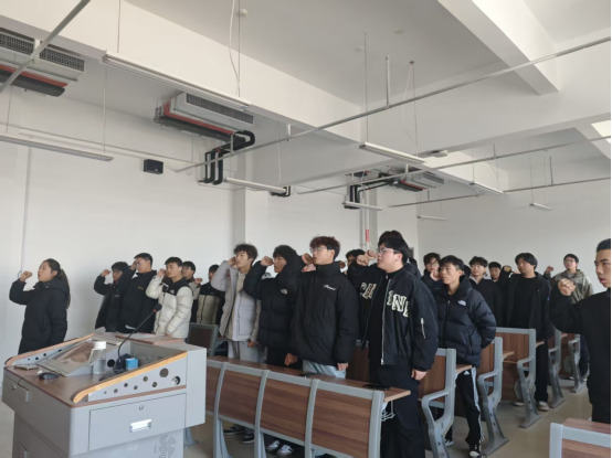 活动在激昂的集体合唱《没有共产党就没有新中国》中达到高潮。全体团员青年肃立齐唱,嘹亮的歌声饱含对党的真挚情感与坚定追随,凝聚起同心奋进的磅礴青春力量。随后,在庄严的宣誓环节中,大家高举右拳,郑重宣誓。铿锵誓言与红色旋律相互激荡,充分展现了建院青年坚定不移听党话、跟党走,以青春之我勇担时代重任,立志为民族复兴贡献青春力量的坚定决心与昂扬风貌。