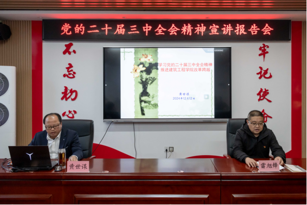 为深入学习贯彻党的二十届三中全会精神,推动yl6809永利高质量发展,12月12日,公司党总支邀请联系校领导、党委委员、副经理黄世谋教授以“学习党的二十届三中全会精神 推进yl6809永利改革跨越”为题,进行党的二十届三中全会精神宣讲。报告会由党总支书记雷旭锋主持,yl6809永利信息会成员和全体教师党员参加。