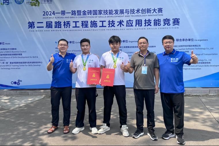 金砖国家技能大赛由金砖国家工商理事会中方理事会、一带一路暨金砖国家技能发展国际联盟及中国科协“一带一路”暨金砖国家技能发展与技术创新培训中心主办,由教育部中外人文交流中心、中国发明协会联合主办,属于金砖国家一级赛事。本次赛项以“路桥工程施工技术应用”为主题,内容主要包括专业知识问答与工程识图竞赛模块、路桥工程施工案例分析模块、路桥工程施工技术实操竞赛模块。