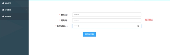 点击左侧【修改密码】栏,按页面要求输入原密码、新密码。确认两次输入的新密码一致,点击【保存新密码】完成操作。密码至少包含字母、数字,且不少于8位。