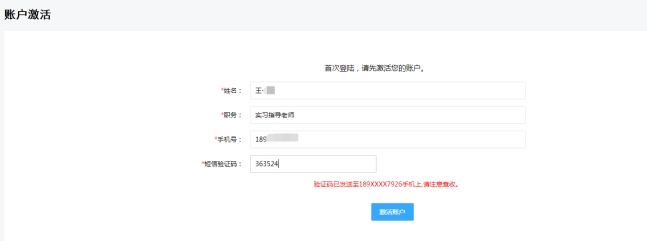 指导老师打开系统后进入登录界面,输入用户名和密码,完成图片验证,点击【登录】,进入系统。首次登录需要完善账户基本信息并修改密码后激活账户,账户初始密码为Sxba@2021。