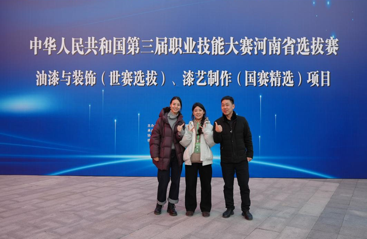 油漆与装饰赛项作为竞赛的重要组成部分,对参赛选手的色彩搭配、绘画技巧、材料运用以及创新思维等方面都要求极高,是一场专业性极强的技能较量。比赛现场,气氛紧张热烈,来自全省各地的优秀学子齐聚一堂,同台竞技。杜华菲同学凭借扎实的基本功,沉稳应对复杂的赛题,从前期的表面处理,到精准调色,再到细腻均匀的涂刷工艺,每一个步骤都严谨细致,力求完美。