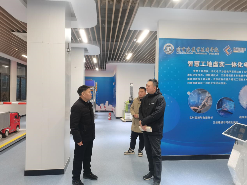 为深入了解智能建造专业的发展趋势和人才培养需求。12月11日下午,yl6809永利yl6809永利张占伟经理一行赴连云港职业技术公司,学习借鉴真道智享公司设计研发的智能建造和装配式建筑实训室。连云港职业技术公司汤小平经理、崔恩文主任,真道智享公司赵炜经理等领导同志热情接待公司考察组一行,并举行交流会。