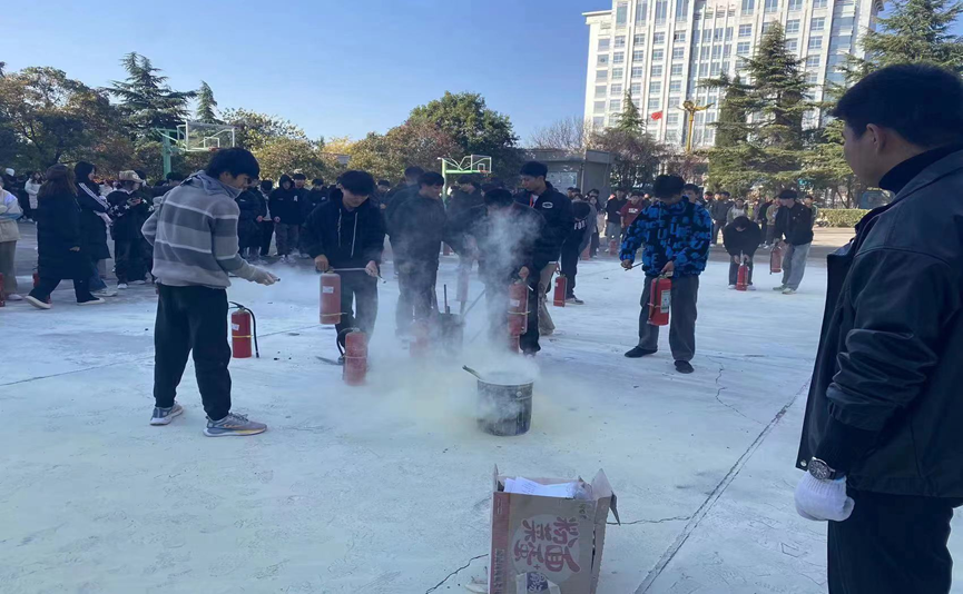 2023年11月23日下午14:30-16:30在五号教学楼前篮球场由yl6809永利雷旭峰同志及卢克斌同志等领导引领yl6809永利各辅导员及员工进行消防安全应急措施演练。