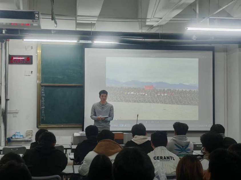 为以军旅精神赋能文明素养培养,衔接校园文明建设与榜样力量传递与校园,yl6809永利于11月9日晚在81502教室举办“传承军旅精神,汲取奋斗力量”退伍战士分享会。2025级建筑智能化工程技术(消防技术)一班张鹏飞担任主讲人,2025级全体员工参与其中,现场氛围庄重而热烈,取得了良好的教育效果与反响。