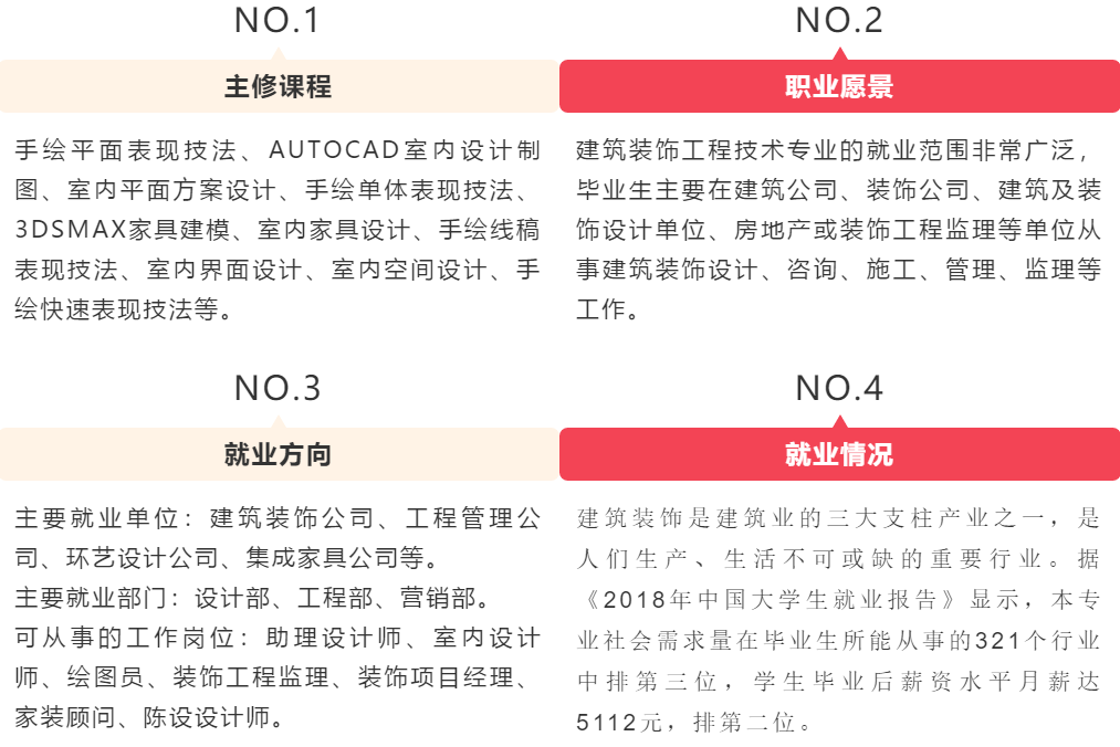员工在校期间通过理论学习与工程实践,成长为懂施工、会设计、能创新、有文化艺术修养与物联网思维的高素质复合人才,后期可在室内装饰、智能家居、房地产、建筑设计院等企事业单位从设计、监理、造价、施工、等相关核心岗位。