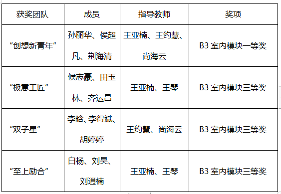 大赛共计600余组队伍参加,采用线上比赛的方式,评奖比例为一等奖占10%、二等奖占20%、三等奖占30%。其中B赛项(BIM建模)分为房建模块、市政模块、室内模块、装配式模块、创新模块,公司2019级建筑装饰工程技术专业四组队伍报名参加室内模块。