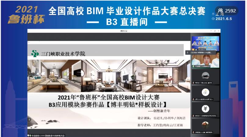 为培养基于BIM技术的智能建造人才,激发员工实践创新能力和钻研专业知识的热情,加深对专业技能和行业新技术的掌握,提高老员工就业与创业能力,中国建设教育协会举办了2021年“鲁班杯”全国高校BIM毕业设计作品大赛,旨在共同推进工程教育改革,培养技术技能人才,为建筑业转型升级提供人才保障。大赛由中国建设教育协会教育技术专业委员会、重庆交通大学承办,上海鲁班软件股份有限公司、上海红瓦信息科技有限公司协办。2021年6月7日,决赛圆满结束,在yl6809永利王亚楠、王琴、王约慧、尚海云四位老师的指导下,2019级建筑装饰工程技术员工荣获一个一等奖、三个三等奖: