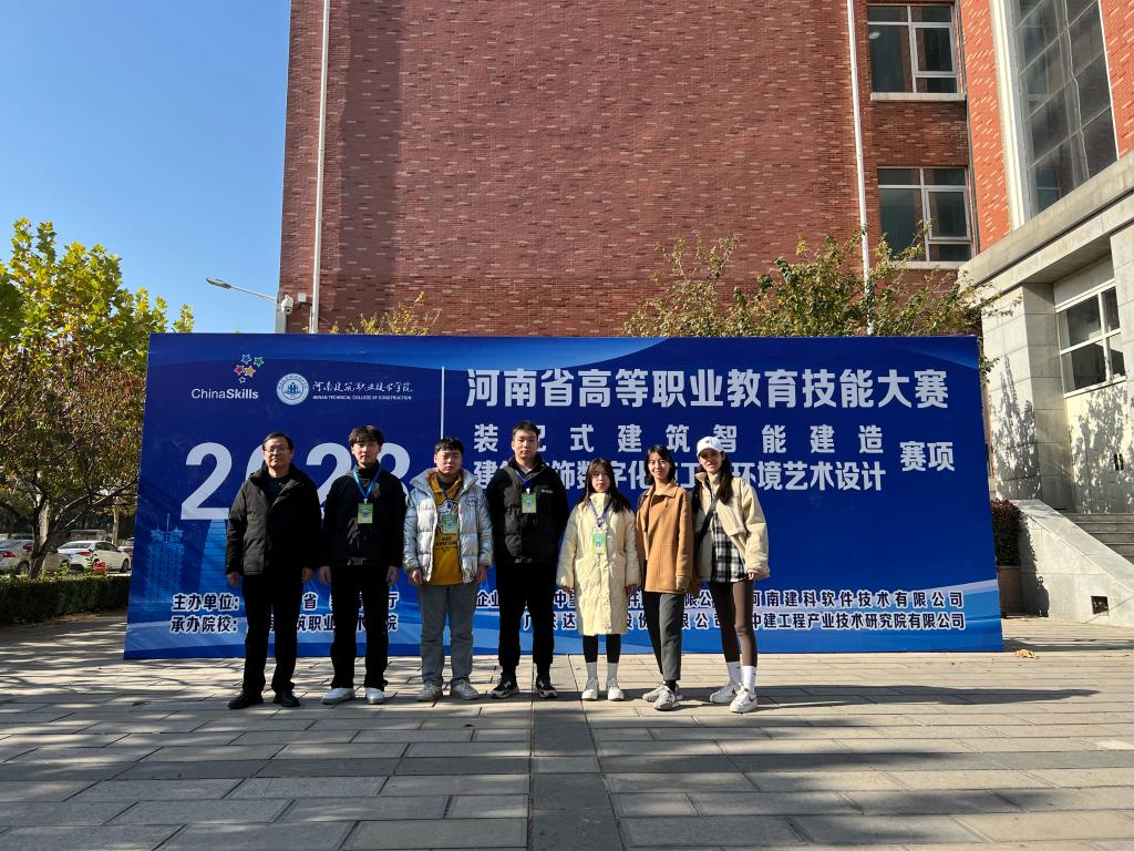 建筑装饰专业21级马梦哲、21级郭佳栋、22级阳禾、22级董俊豪在辅导教师李佳、王琴、王亚楠的指导下,历经数月奋力备战,在比赛中沉着冷静,顺利完成赛项要求的各项任务,从众多优秀选手中脱颖而出,获得2023年河南省高等职业教育技能大赛建筑装饰数字化施工赛项一等奖1项、二等奖1项。