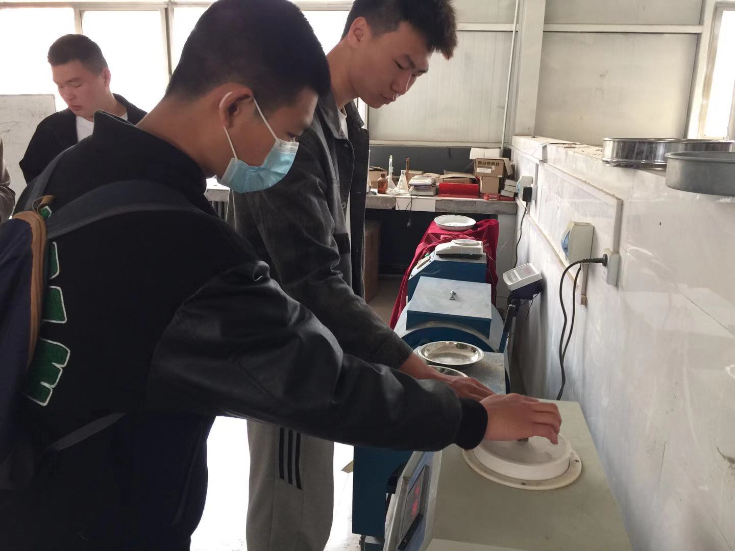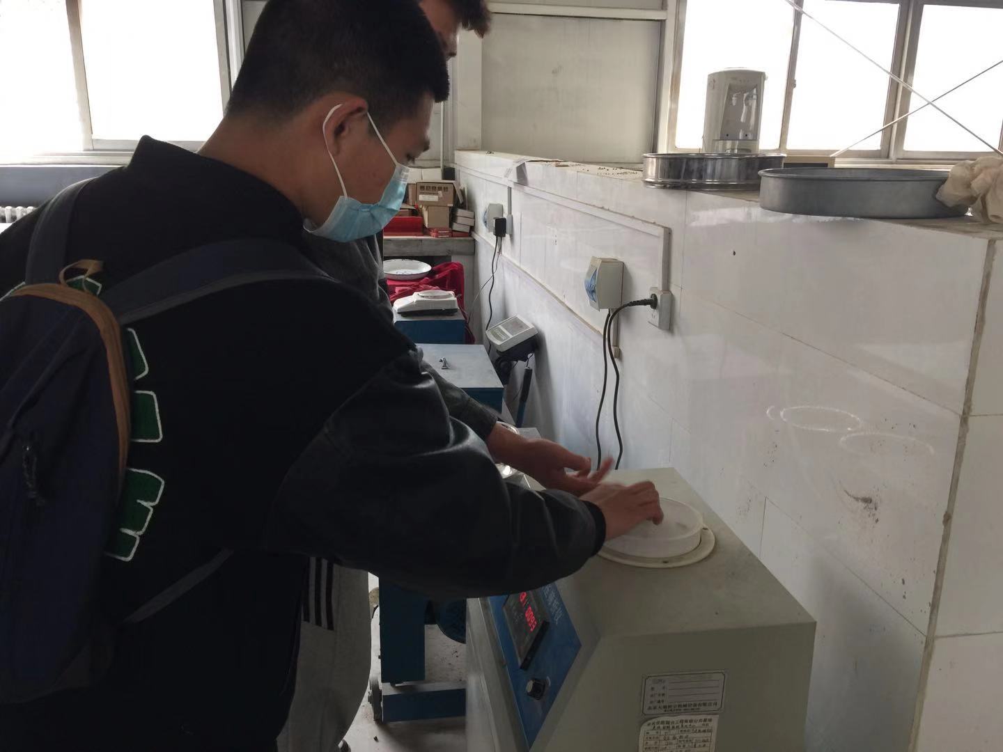 路桥专业员工通过负压筛析仪检测水泥细度,从而队水泥特性进行检测。