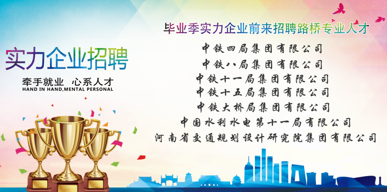 截至2025年六月,我专业共迎接用人单位百余次,单次招聘人数在十五人以上的就高达二十一次,就业率完成了200%的飞跃。在此期间有多次招聘单位为国有大型企业,如中铁十一局、中铁十五局、中铁大桥局、中铁四局、中铁七局、中铁九局、中国水电水利十一局等,大型国、央企在实习单位中占比74.1%,远超其他同类专业。