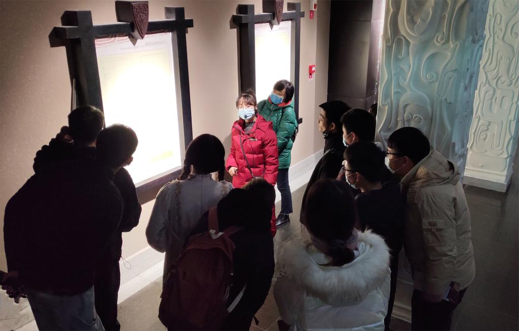 《拓片制作》课程在课堂之外还安排同学们到校外实践场所认识学习。同学们参观了虢国博物馆,对馆藏文物的高精拓片认真学习,并将学习的技术用于实践项目。