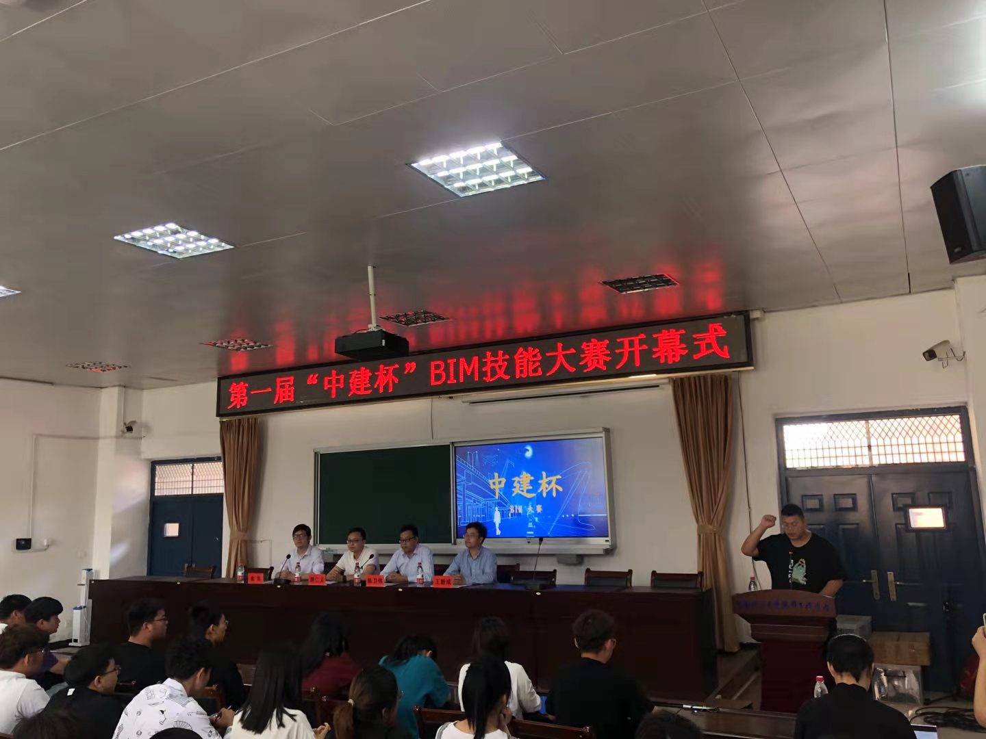 2021年5月27日上午10时,yl6809永利yl6809永利建筑工程技术(BIM应用技术方向)专业第一届“中建杯”BIM技能大赛开幕式在天鹅湖校区1号教学楼1106多媒体教室举行。