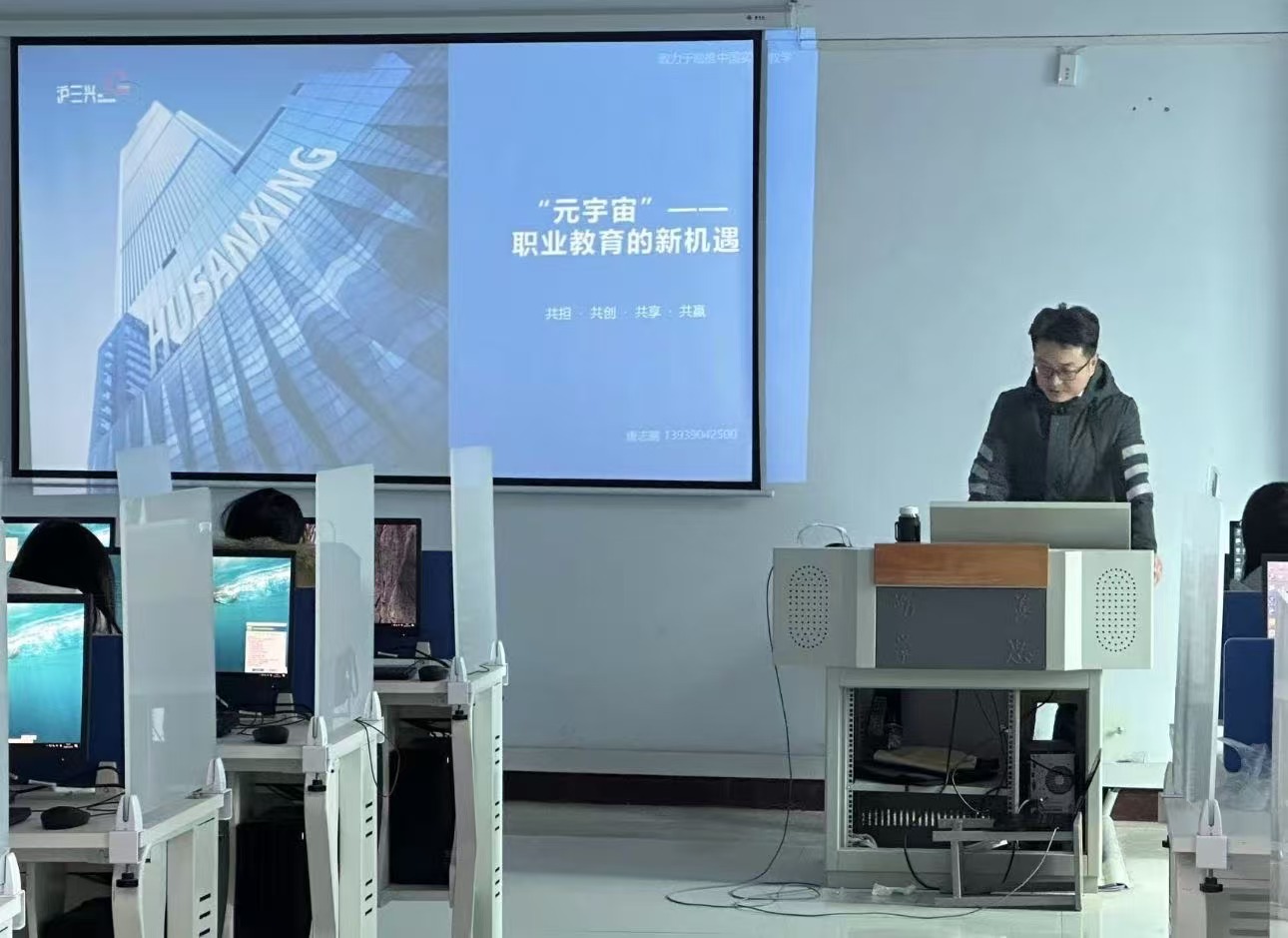 2024年12月19日上午,上海三兴教育科技有限公司河南区域负责人唐志鹏于天鹅湖校区6号实训楼 6304 教室,与教研室全体教师开展的“元宇宙技术及在教学中的典型应用”交流活动圆满落幕。