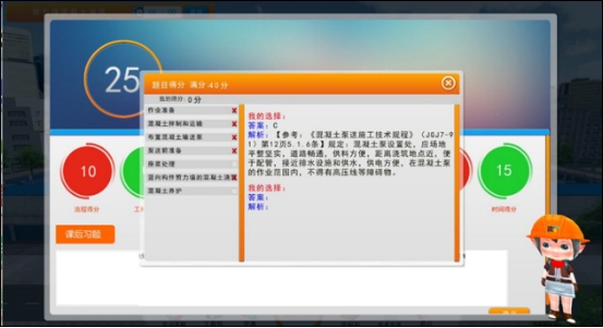 其次“仿真交互式实训”从人材机选择、施工流程、施工内容、施工位置等多样化考核形式,多维度检验学习效果,精细而实时化的评测出实训流程、人材机选择、答题时间、考核题目和施工位置等得分,且针对员工实训问题作出精确分析,帮助员工进行针对性的训练,最终完成实训任务,达到实训目的,解决老师考核难、量化难问题。