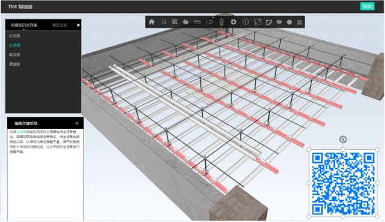 系统内置不少于50种的装饰构造BIM模型,方便老师在授课中碎片化应用。模型在展示过程中,支持闪烁、刨切、标注、文字编辑等功能,将隐蔽不可描述的细部构造清晰的呈现在员工面前。模型可通过二维码扫描的形式进行查看,员工可更加直观的了解装饰构造要求,减少教学难度,提高员工学习热情。