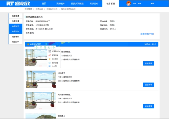 资源库内的图文、视频、试题、模型、TIM模型、BIM模型可生成二维码和资源链接,老师将生成的资源链接插入到教材中形成生动的教学资源,员工通过手机QQ、微信等扫描二维码便可进行手机查看教师分享的模型。