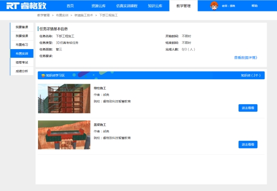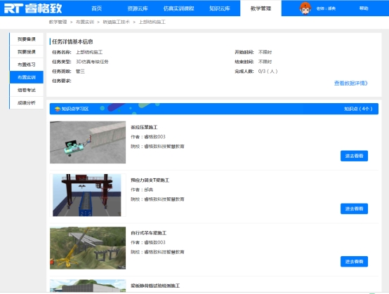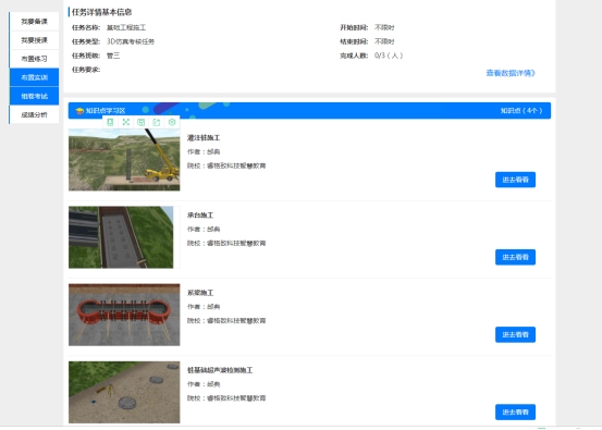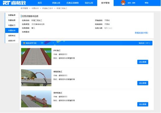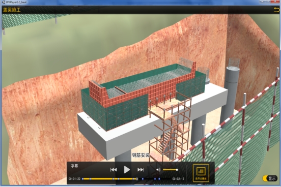 桥涵施工技术虚拟仿真课程包含基础工程、下部工程、上部工程、附属工程的实训内容,真实体验施工工艺全过程,实训流程环环相扣,实训过程由浅入深,实现真实施工现场不具备和难以完成的教学功能。